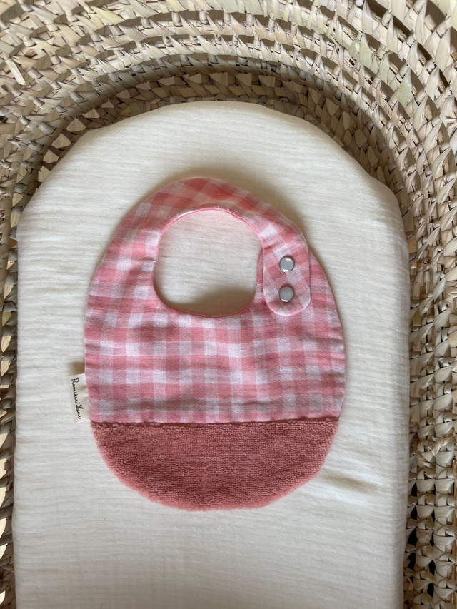 Ce bavoir, réalisé en double gaze vichy rose, apportera un charme intemporel et léger au cou de votre tout-petit. Le bas du bavoir en éponge bambou ultra douce et absorbante permetra d'essuyer tout en douceur la peau délicate de votre bébé.