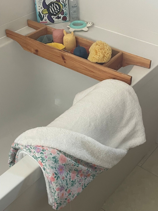 Laver la cape de bain à 40 degré maximum et ne pas utiliser le sèche linge